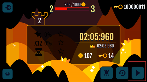4、完成當前關卡后根據通關時間、金幣收集量等獲得評價,解鎖新的城堡關卡體驗從初級轟炸到高階龍戰的挑戰過程。