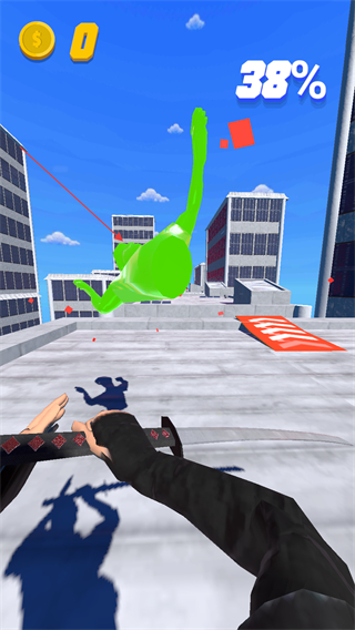 3、利用忍者的武器攻擊綠色敵人,消滅敵人的同時收集金幣,金幣可用于升級速度、跳躍等能力,提升跑酷體驗。