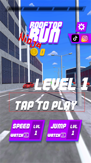 1、點擊屏幕啟動游戲,操控忍者在城市街道、屋頂等場景中跑酷,通過滑動、跳躍等操作穿梭于不同地形,躲避障礙物。