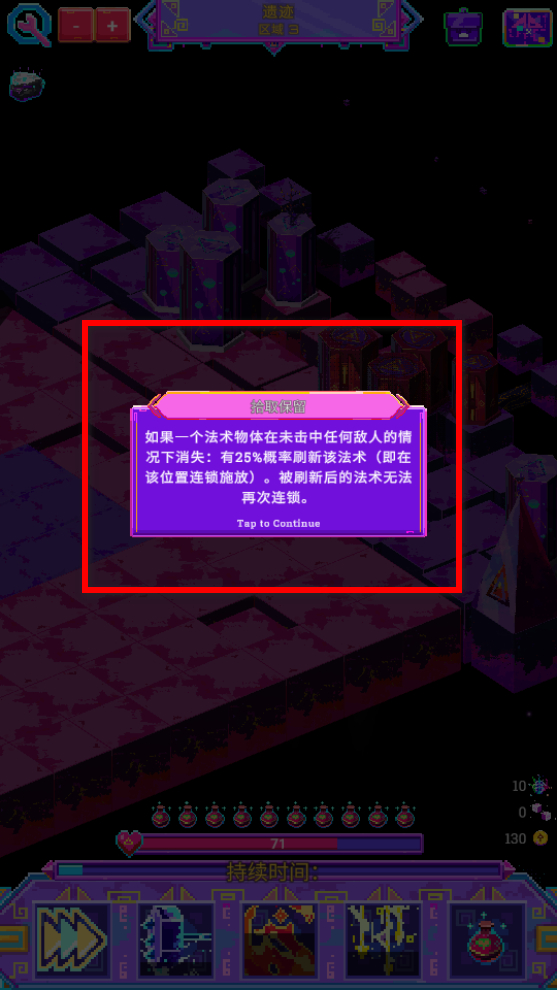 2、了解銘刻保留機制,法術物體未擊中敵人消失時,有25%概率刷新法術,刷新后的法術在該位置連鎖施放時無法再次連鎖。