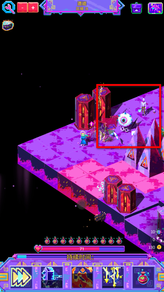 4、生命值不足時點擊藥瓶圖標恢復生命,當生命值降低時,找到藥瓶圖標點擊使用,能回一部分血,保障法師在戰斗中持續生存。