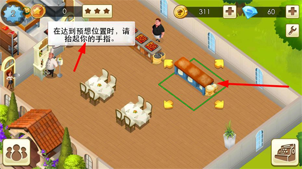 2、將生面團助手拖放到預想位置后抬起手指,完成該角色在餐廳內的布置,使其開始提供對應服務。