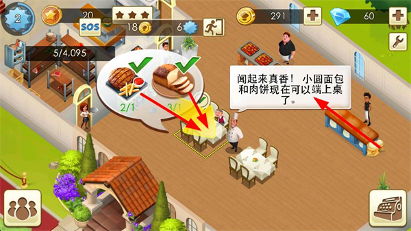 4、顧客用餐結束后獲取金幣獎勵,積累金幣可用于升級餐廳設施或解鎖新菜品,助力餐廳發展。