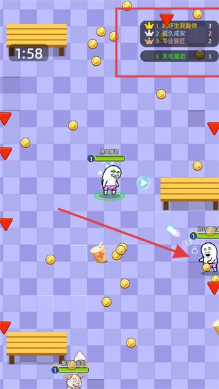 2、在尋找對手頁面等待系統匹配對手,匹配完成后進入游戲對戰場景,場景中收集金幣和道具,與其他玩家競爭。