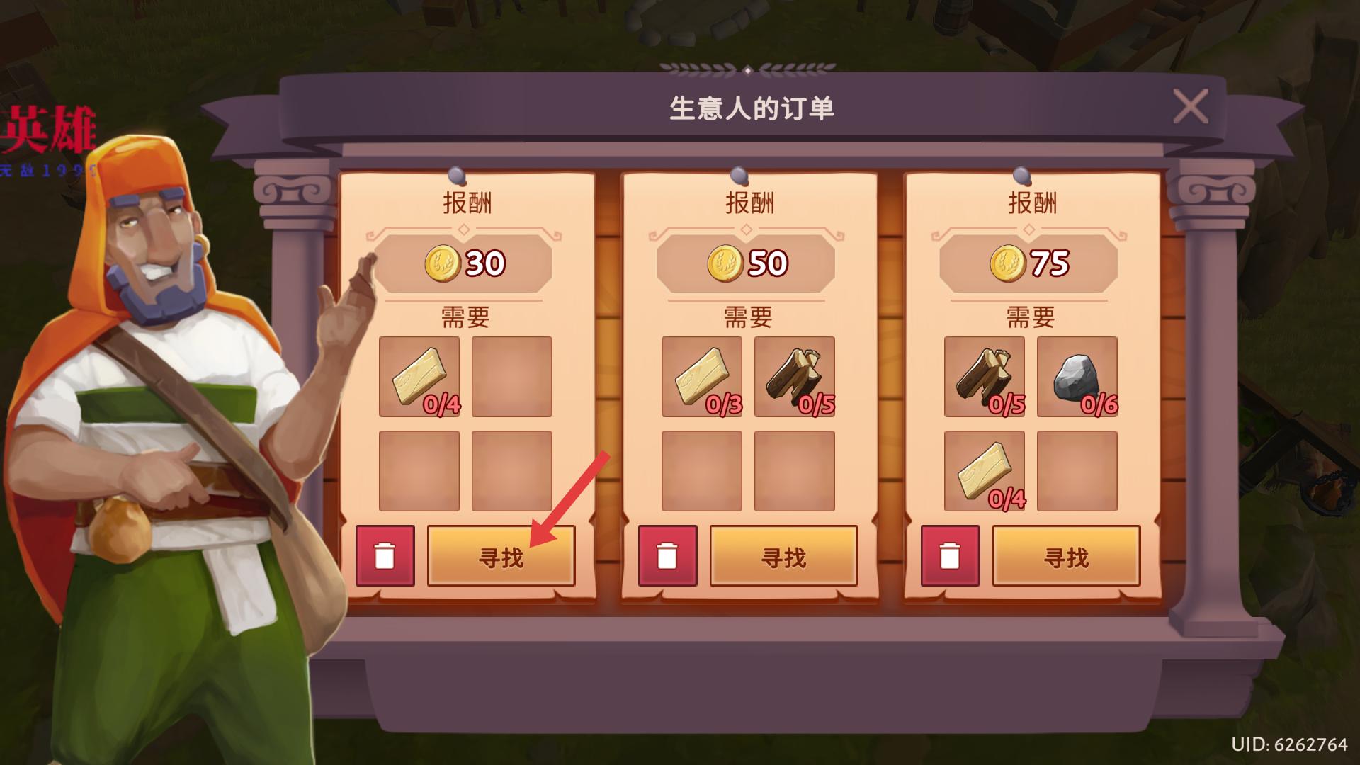 3、在生意人的訂單界面,選擇需要完成的訂單,點擊尋找按鈕,收集所需材料,積累資源用于莊園建設和角色發展。