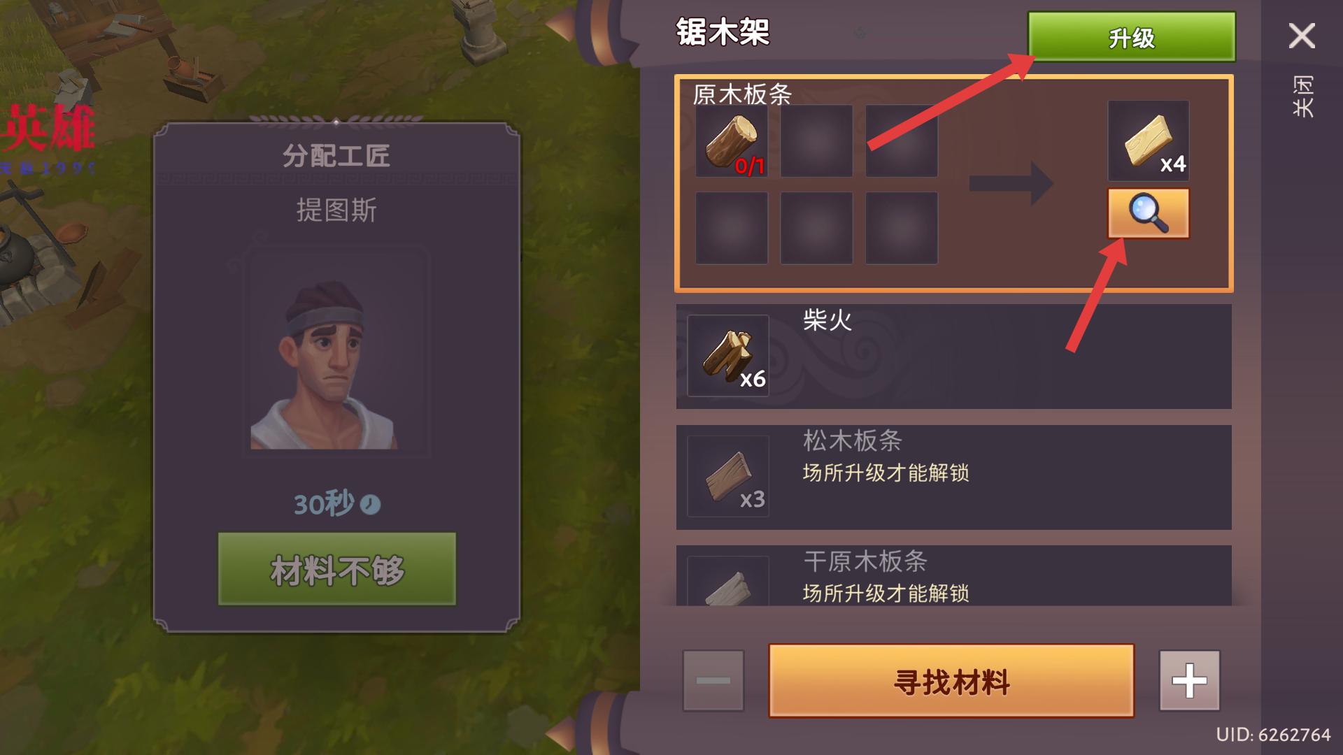 4、在鋸木架界面,點擊升級按鈕提升鋸木架等級,解鎖更多木材加工功能,分配工匠加工木材,獲取原木板條等資源,推進莊園建設。