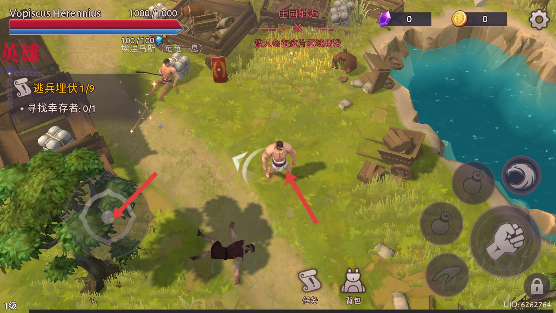 1、游戲中操控角色移動,點擊左下角虛擬搖桿控制方向,在場景中探索,完成尋找幸存者等任務,推進游戲進度,獲取經驗和資源。