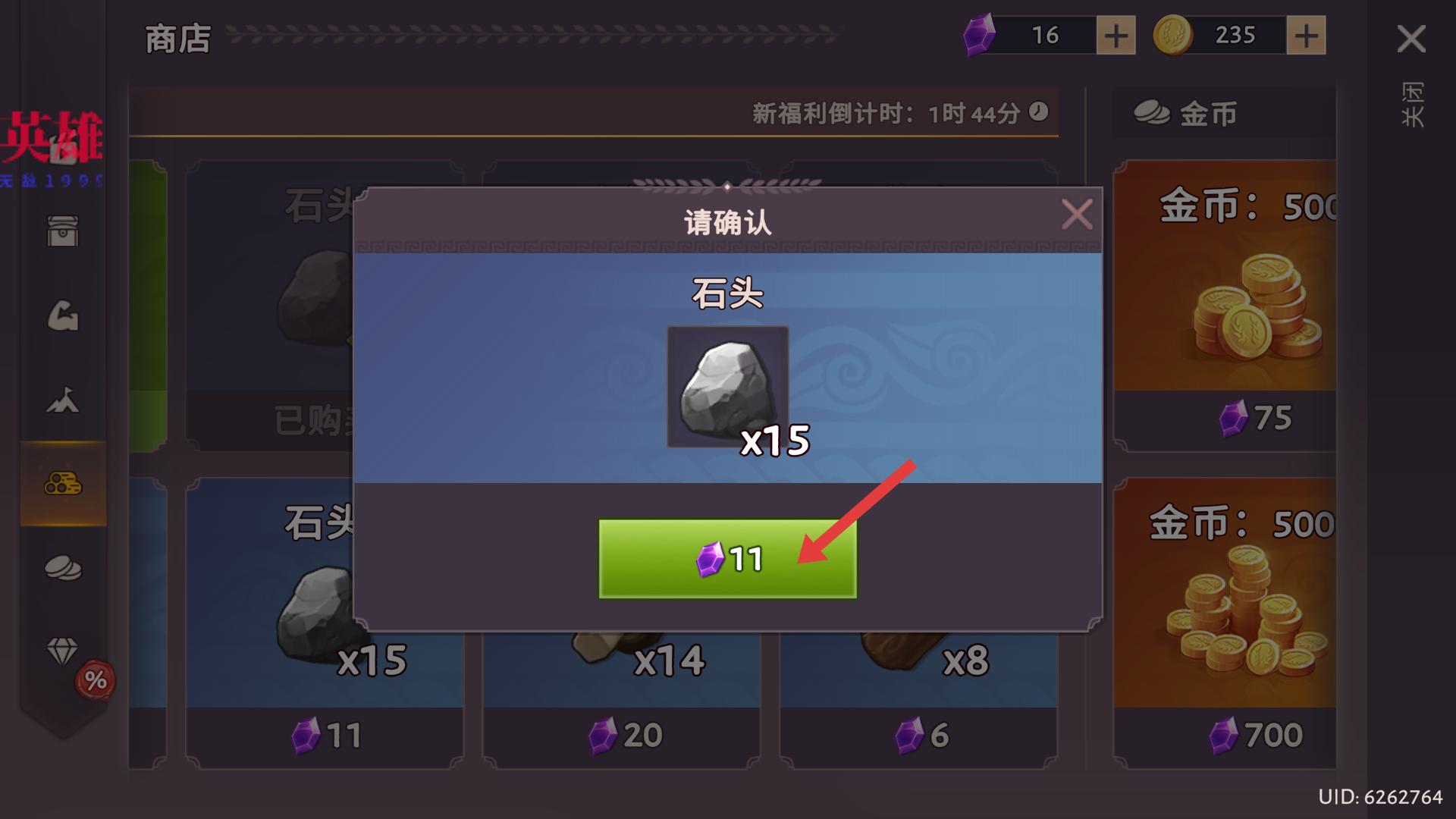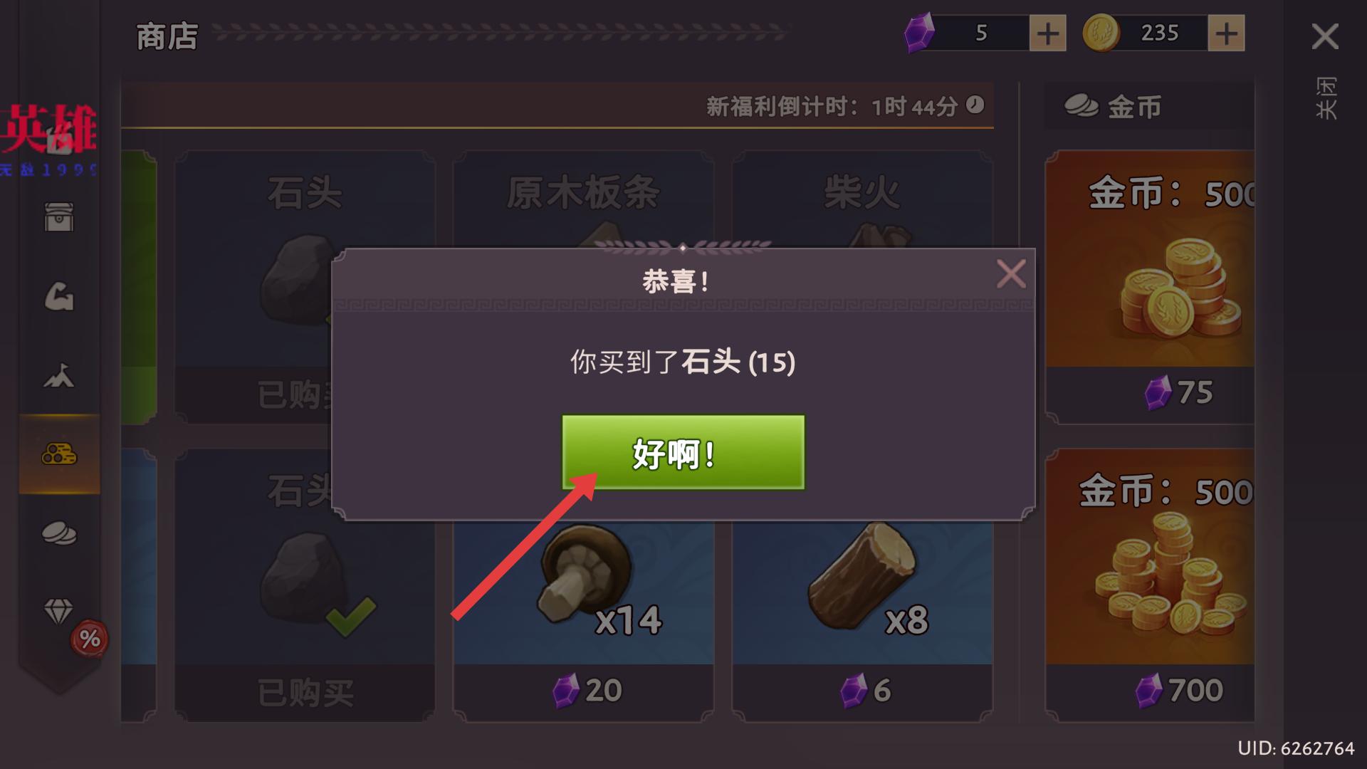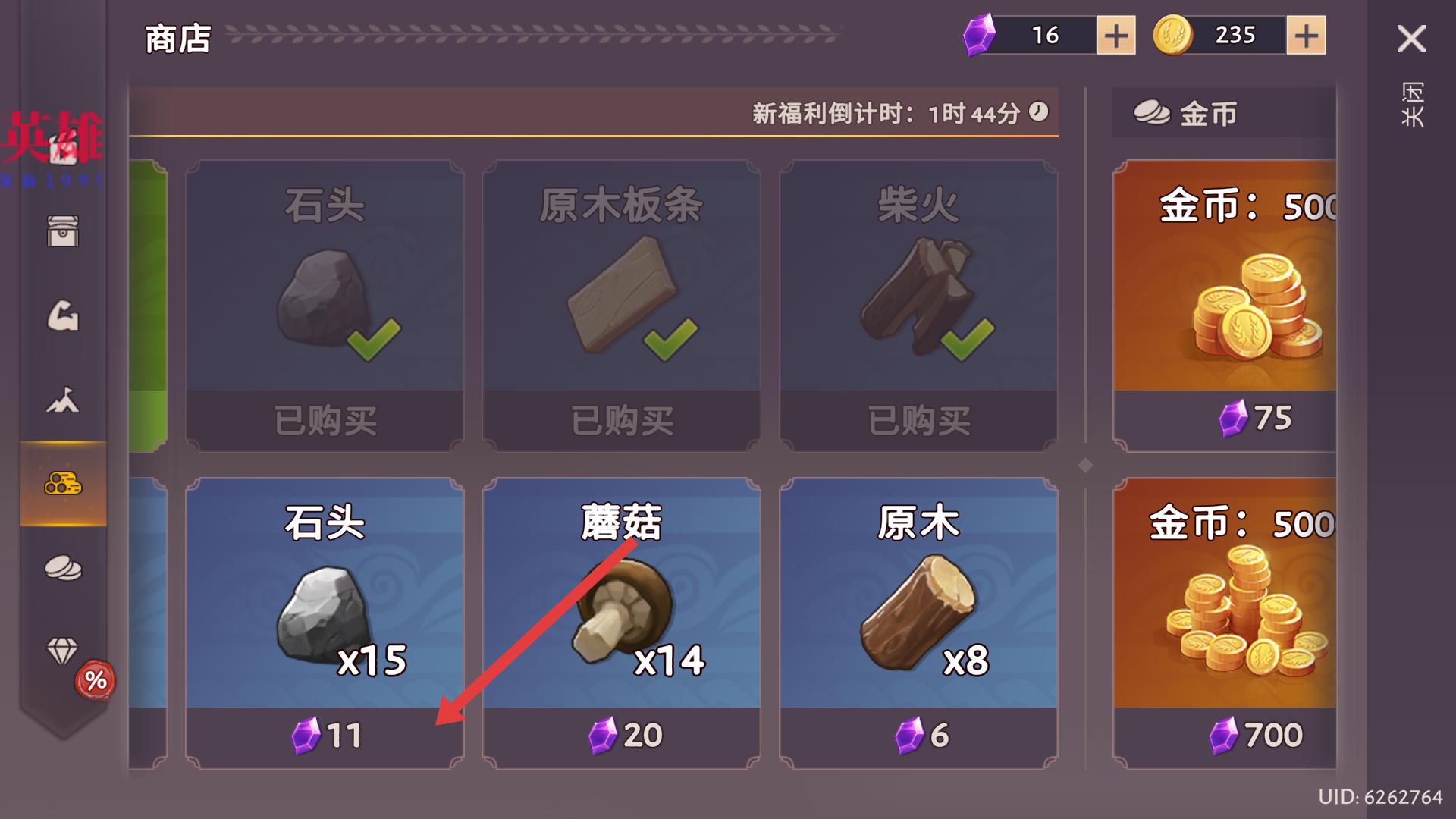 2、進入商店后,查看各類資源的購買選項,如石頭、蘑菇、原木等,根據自身需求和紫晶數量,選擇合適的資源進行購買。