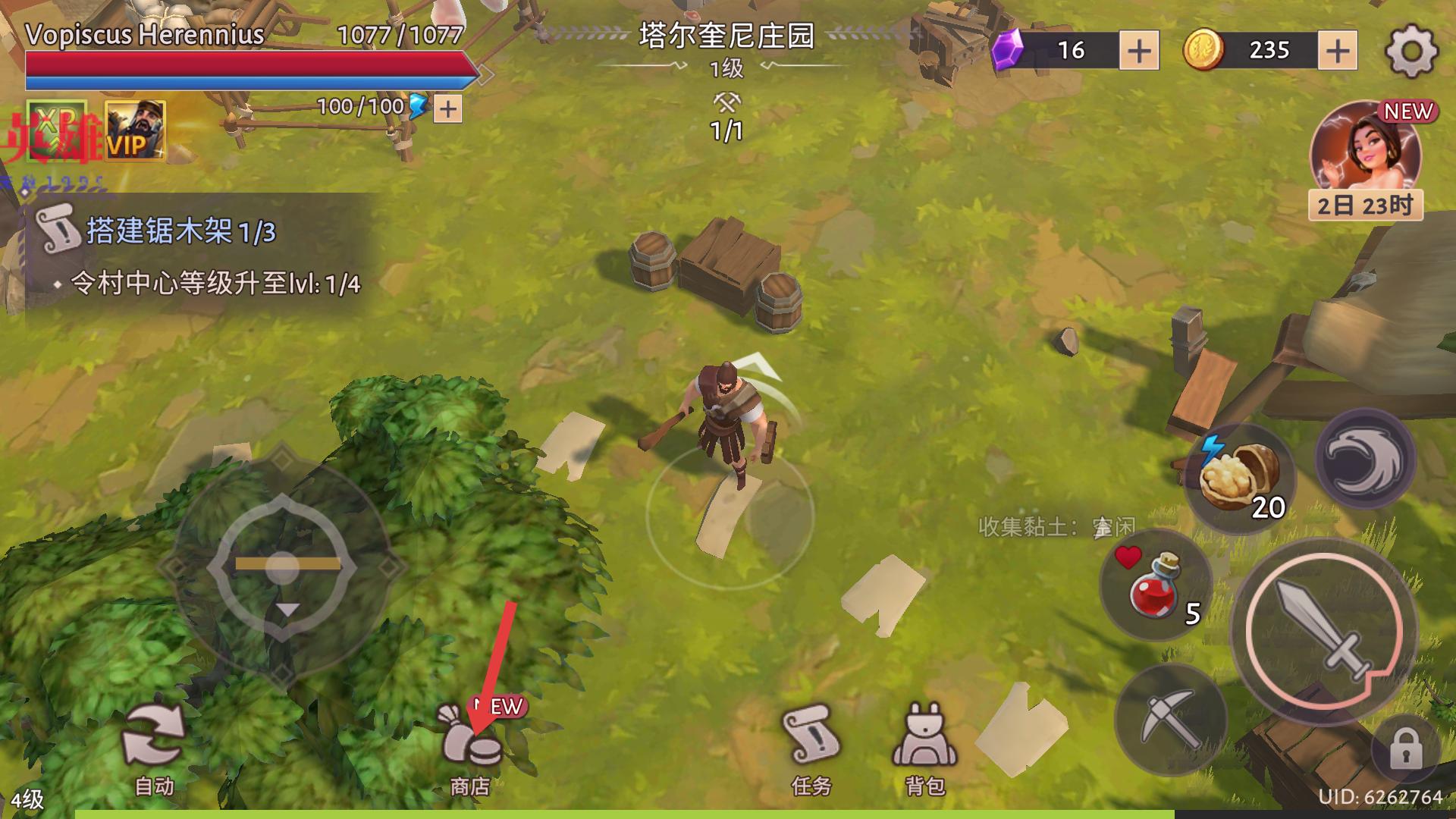 1、在塔爾奎尼莊園場景,留意左側商店按鈕,及時進入商店可獲取資源,同時關注任務進度。