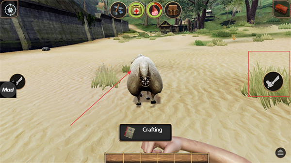 4、使用制作的武器如石斧狩獵動物如羊獲取食物和資源,同時應對島嶼上的危險生物,提升戰斗技巧以在輻射環境中生存。