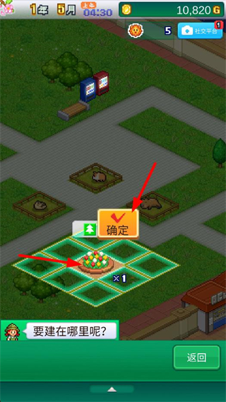 4、還可選擇裝飾類設施,選定公園內的區域后點擊確定,即可完成該設施的建造,提升公園的環境美觀度。