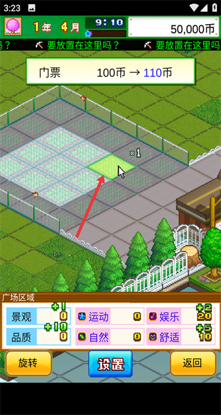 3、將選中的設施放置到公園合適區域,依據區域特點和規劃,合理布局設施位置。