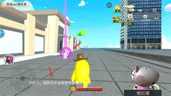 2、進入游戲后尋找NPC接任務根據任務提示前往指定地點,了解任務背景如伙伴被蔬菜怪物抓走明確任務目標。