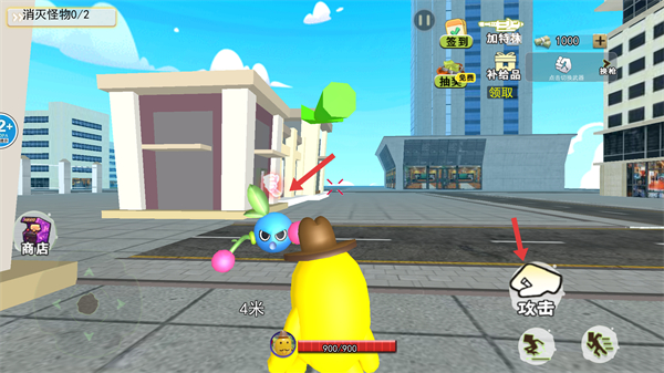 3、遇到蔬菜怪物時點擊攻擊按鈕發起攻擊,消滅怪物以完成任務注意攻擊時機和怪物的動向確保順利擊敗。