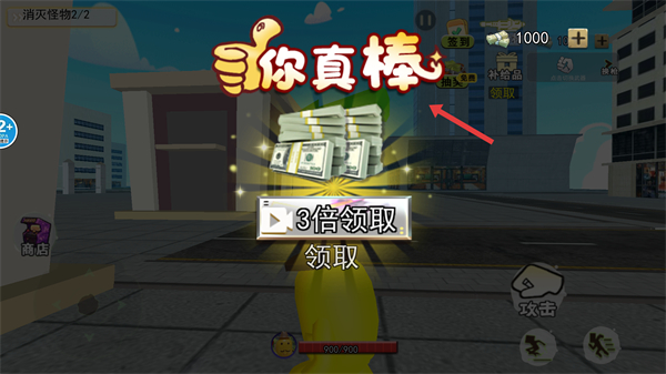 4、消滅所有怪物后可獲得金幣獎勵點擊領取獲取獎勵利,用獎勵的金幣提升自身戰力或解鎖新內容繼續推進游戲進程。