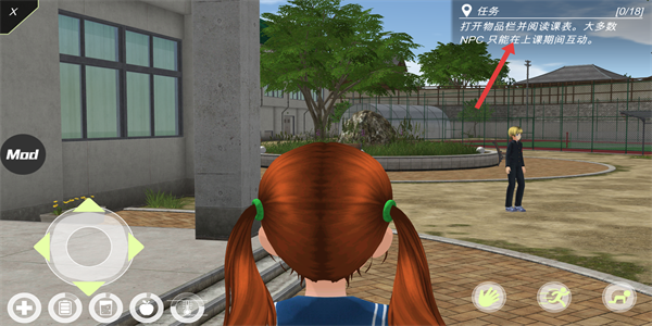 3、操控角色在場景移動,根據任務提示找到并打開物品欄,準備閱讀課表,以便在上課期間與NPC互動。