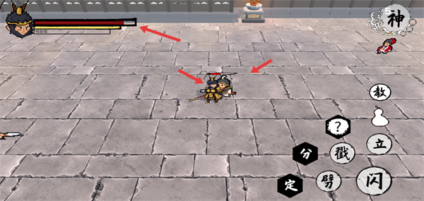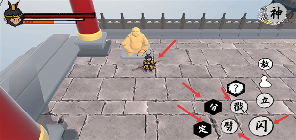 1、在場景中移動時熟悉右側分戳立劈閃等操作按鈕利用這些按鈕控制角色行動,探索場景中的元素如佛像等了解場景互動。