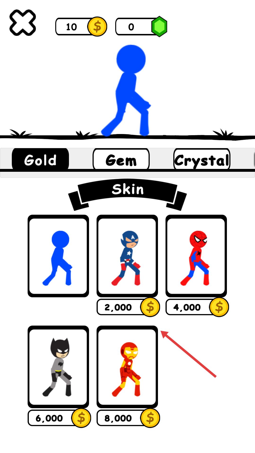 1、在皮膚界面,可使用金幣解鎖不同的角色皮膚,選擇喜歡的皮膚后,進入游戲開始冒險。