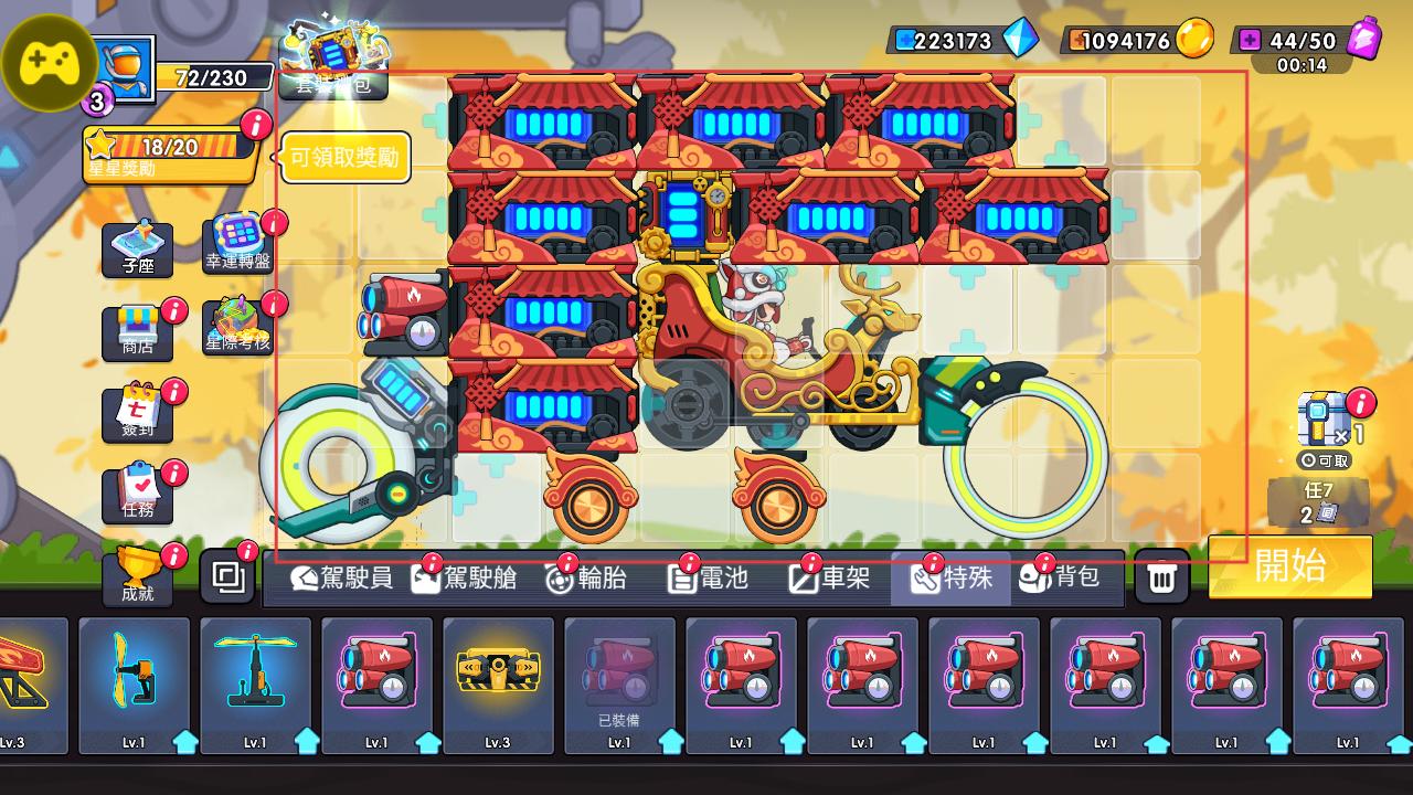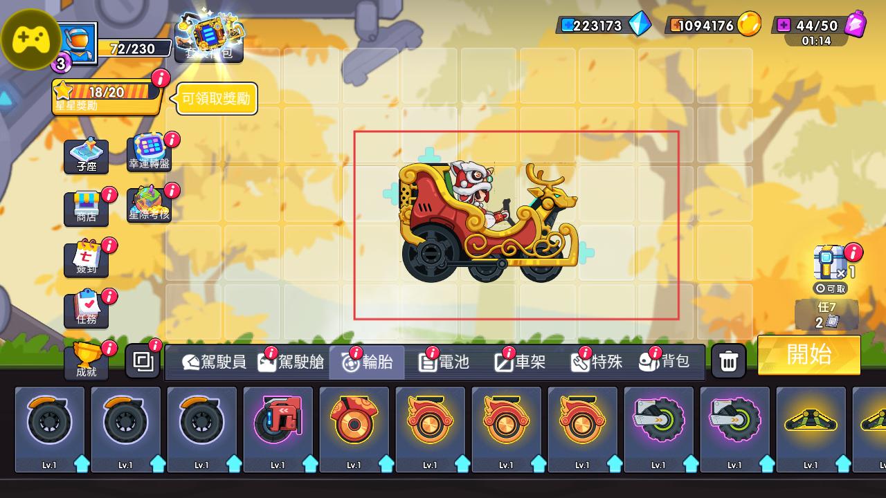 3、全面改裝車輛,添加輪胎、特殊部件等,將車輛組裝得更為復雜,提升其競速能力,完成組裝后點擊開始進入賽道。