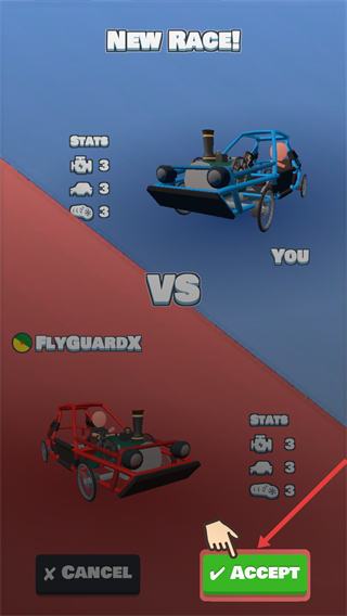 3、可接受新的競速比賽挑戰,與其他玩家的汽車對決,點擊接受按鈕進入比賽,檢驗汽車性能。