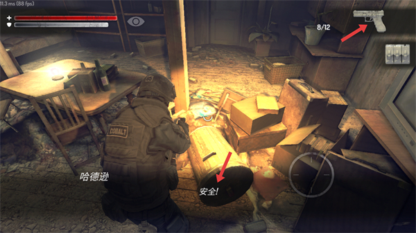 2、游戲中需關注角色的生命值和護甲值利用武器攻擊敵人,探索場景時注意安全區域提示確保自身安全。
