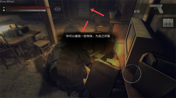 3、遇到障礙物時可摧毀一些物體為自己開路探索更多區域推進游戲進程,同時注意周圍環境防范敵人襲擊。