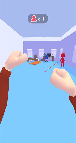 3、進入房間后,發現紅色目標人物,操控角色靠近并與其互動,完成追捕任務,消除目標人物,界面顯示剩余目標數量,確認任務完成。