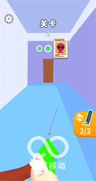 1、進入足球挑戰者,看到觸屏移動的操作提示,按照指引滑動屏幕,控制角色向目標房間移動,界面顯示通緝目標信息,為追捕紅色人物做好準備。