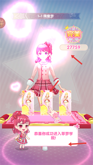 3、參與偶像夢關卡通過就能成功進入菲夢學院,解鎖更多專業偶像訓練內容開啟全新的偶像挑戰篇章。