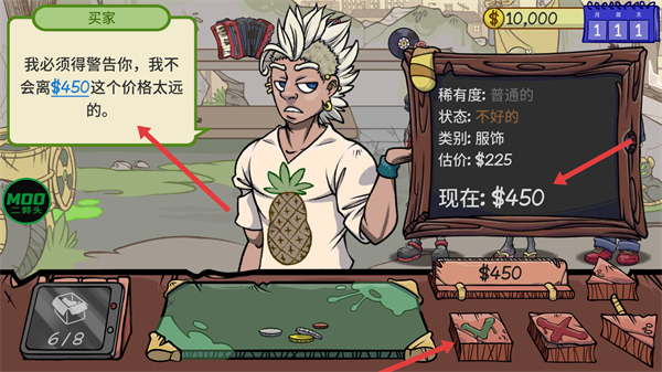 4、與買家談判時給出報價,根據寶物估價和買家心理價位確定價格,完成交易獲取收益。