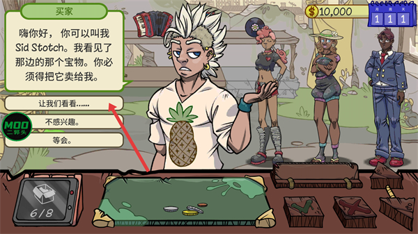 2、遇到買家時選擇讓我們看看選項,查看買家想要的寶物,準備進行謹慎的交易談判。