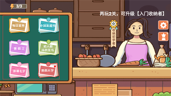 4、完成收納任務可提升收納等級,解鎖新的收納場景和物品類型,同時獲得收納初學者等成就,增加游戲的成就感和探索欲。