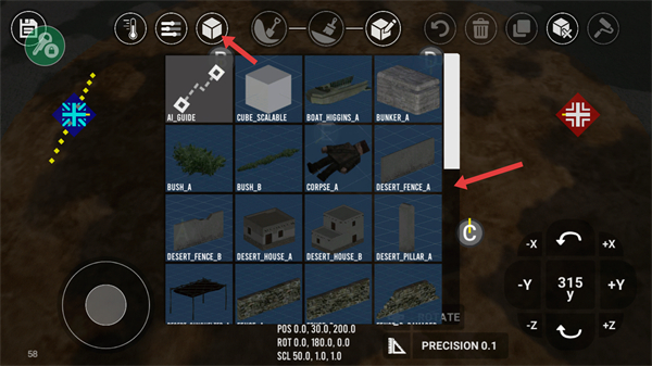3、點擊立方體圖標選擇各類建筑、植被等元素,將其添加到地圖中豐富地圖的場景內容提升地圖的可玩性。
