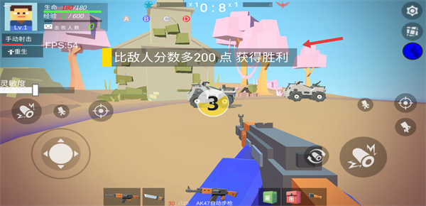 2、明確勝利條件是比敵人分數多200點利用AK47自動步槍射擊敵人,積累分數同時關注生命和擊敗人數推進戰斗。