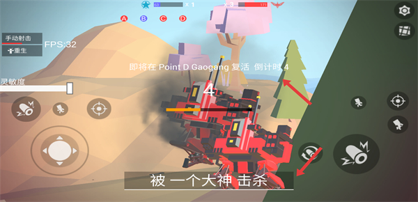 4、被擊殺后等待在Point DGaogang復活復活后迅速加入戰斗,繼續參與分數對決積累擊敗人數為隊伍爭取勝利。
