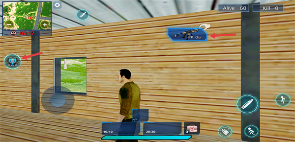 2、拾取PPGun武器裝備后提升戰斗實力同時利用背包功能管理資源,為后續與敵人交戰做好準備留意地圖上的資源點。