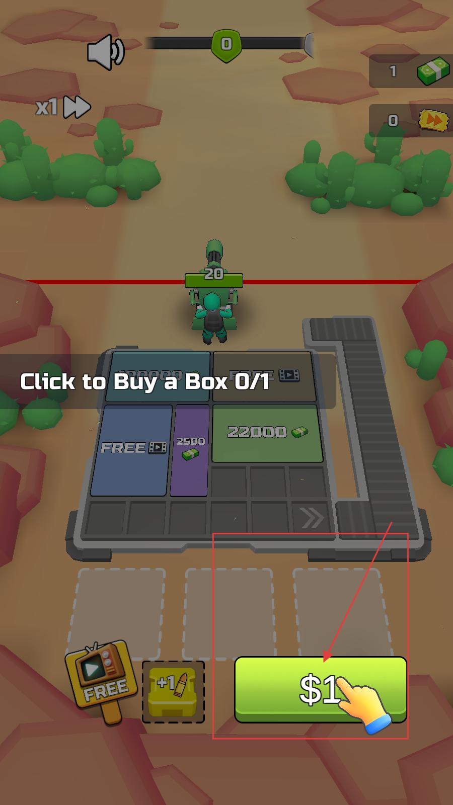1、進入游戲中需點擊綠色按鈕購買箱子,這是獲取資源的關鍵操作,購買后可開啟后續戰斗和合成流程。