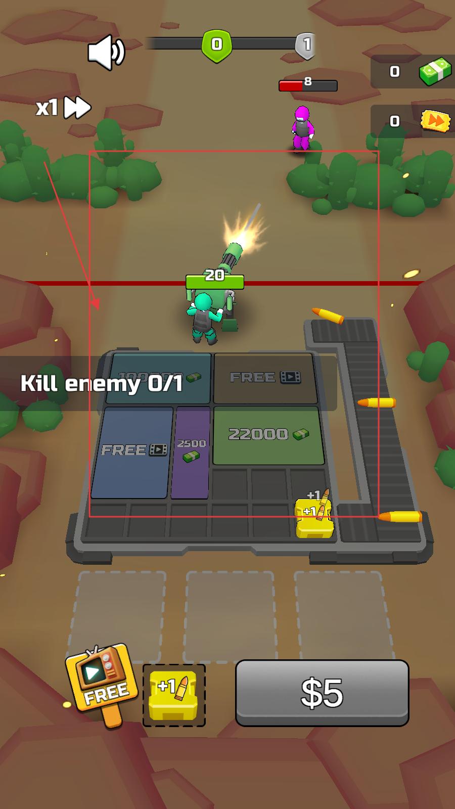 子彈狂熱是一款融合塔防策略的生存射擊游戲,通過操控加特林士兵抵御喪尸潮構筑獨特攻防體驗,創新引入彈藥補給線管理系統,需要合理分配金幣升級子彈裝填效率與特殊屬性,隨機增益系統在每波攻勢后提供三項強化選擇,包含彈道數量增加與元素附魔等效果,豐富的組合策略讓每次戰斗都充滿變數與挑戰。