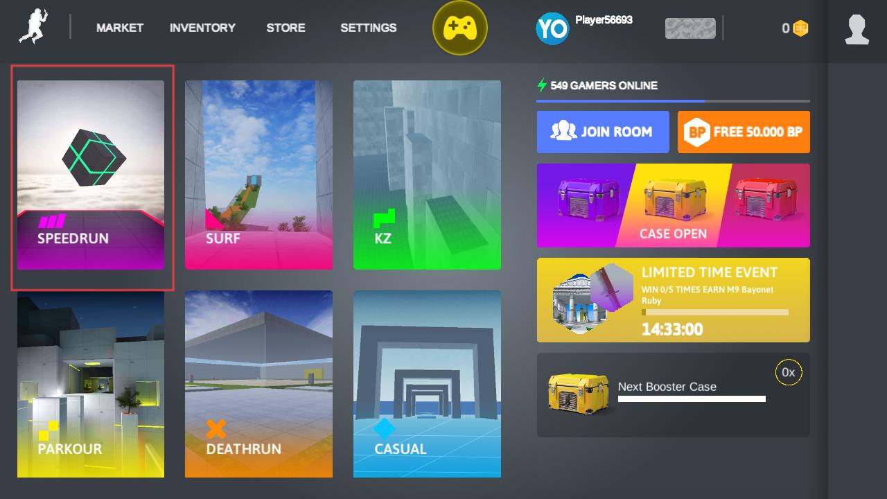 1、進入游戲可選擇SPEEDRUN、SURF等多種模式,開啟不同風格的跑酷挑戰,還能參與多人聯機競賽,體驗多樣玩法。