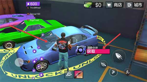 3、在車輛區域,有多種顏色和款式的汽車,可點擊獲取道路伙伴來獲得新車輛,豐富出行選擇。