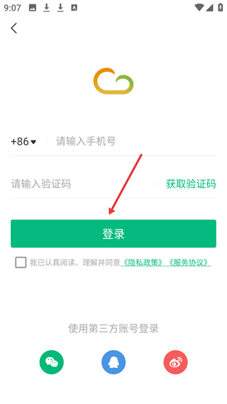 1、登錄板塊支持手機號驗證碼登錄,也可第三方賬號登錄,需同意隱私政策和服務協議,為用戶提供賬號入口。