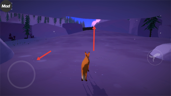 2、利用移動按鈕控制狐貍移動朝著目標方向前進,探索雪地場景留意環境中的線索和互動元素推進探索進程。