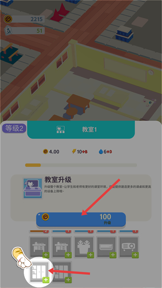 2、消耗資源升級教室提升教室環境,增加課桌和設備上限為學生和老師提供更好的課堂條件。