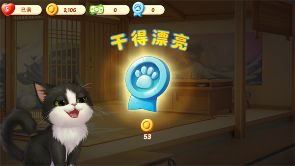 4、完成關卡后可獲得獎牌和金幣獎勵,積累獎牌可解鎖更多游戲內容,金幣可用于裝飾房間,提升游戲溫馨度。