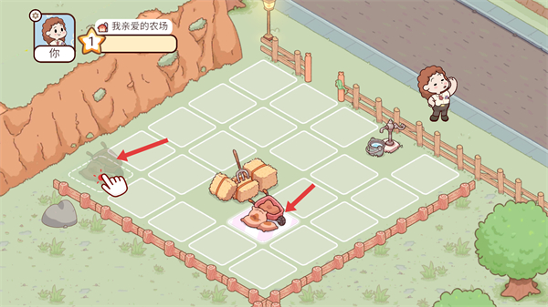 2、將農場中的物品拖動到指定的虛線區域完成農場的初步布置,讓農場的布局更加合理提升農場的美觀度。