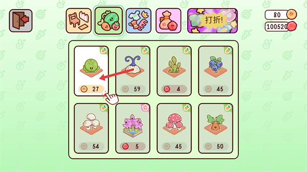 3、在商店中選擇并購買蔬菜種子如卷心菜種子,花費相應的金幣,為農場種植作物做好準備,豐富農場的種植品類。