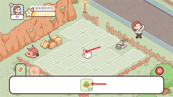 4、將購買的蔬菜種子拖動到農場的空地中進行種植,按照提示操作開啟作物的種植流程逐步發展農場的種植業。