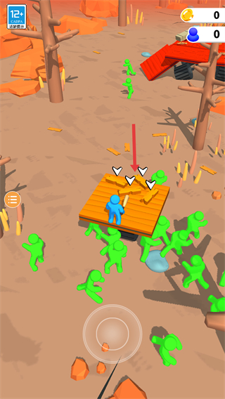 1、收集木板等材料抵御綠色小人的攻擊,保護自身安全同時為后續建筑和發展積累資源。