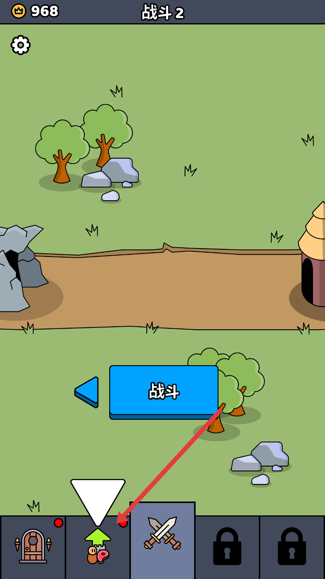 4、戰斗1勝利后,進入戰斗2界面,點擊戰斗按鈕,可開啟新的戰斗,繼續派遣小兵參與戰斗,挑戰新的敵方勢力。