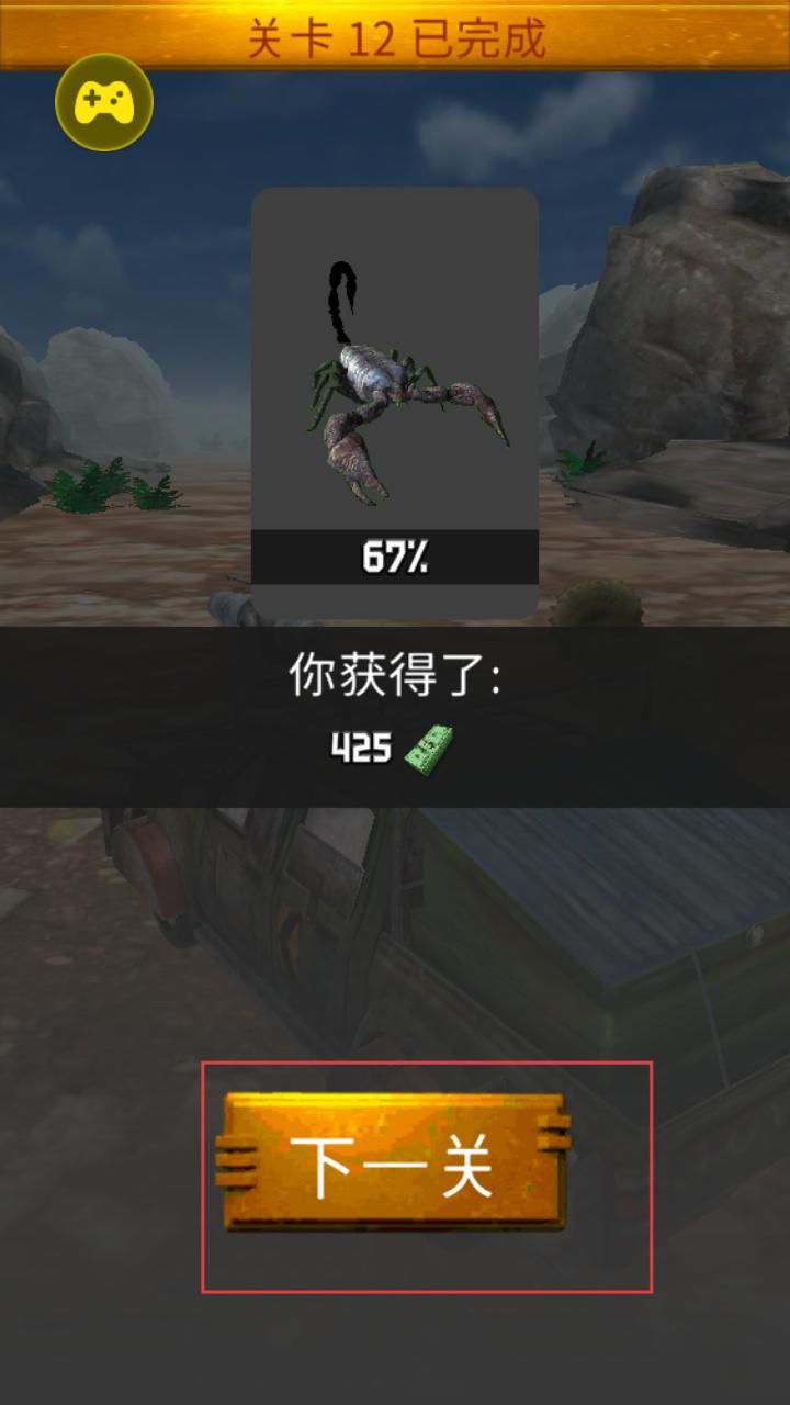 4、關卡12完成后,會獲得金幣和怪物收集進度,點擊下一關按鈕,即可繼續挑戰新關卡,開啟新的怪物戰斗之旅。